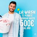 Billetes, monedas, tarjeta bancaria, tarjeta de descuento La Wash